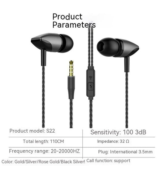 Metal Wired Headset In-ear Wire-controlled Mobile Phone Headset