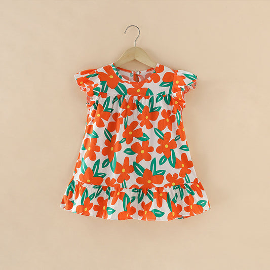 Girls' Floral Stitching Dress